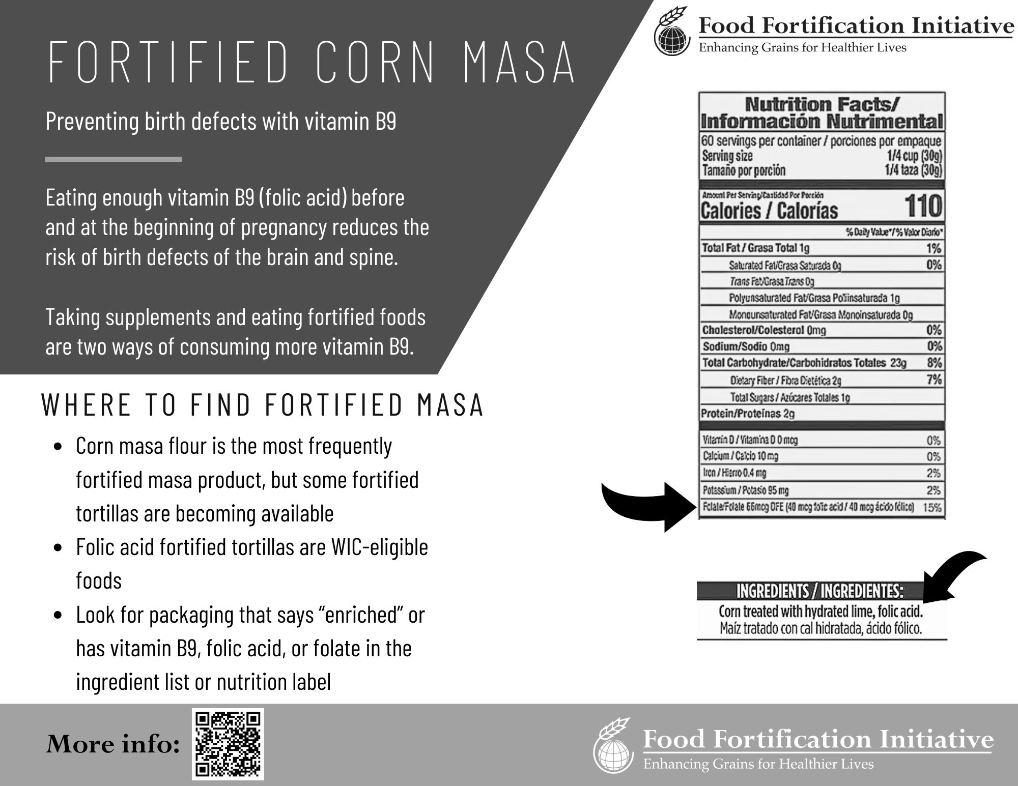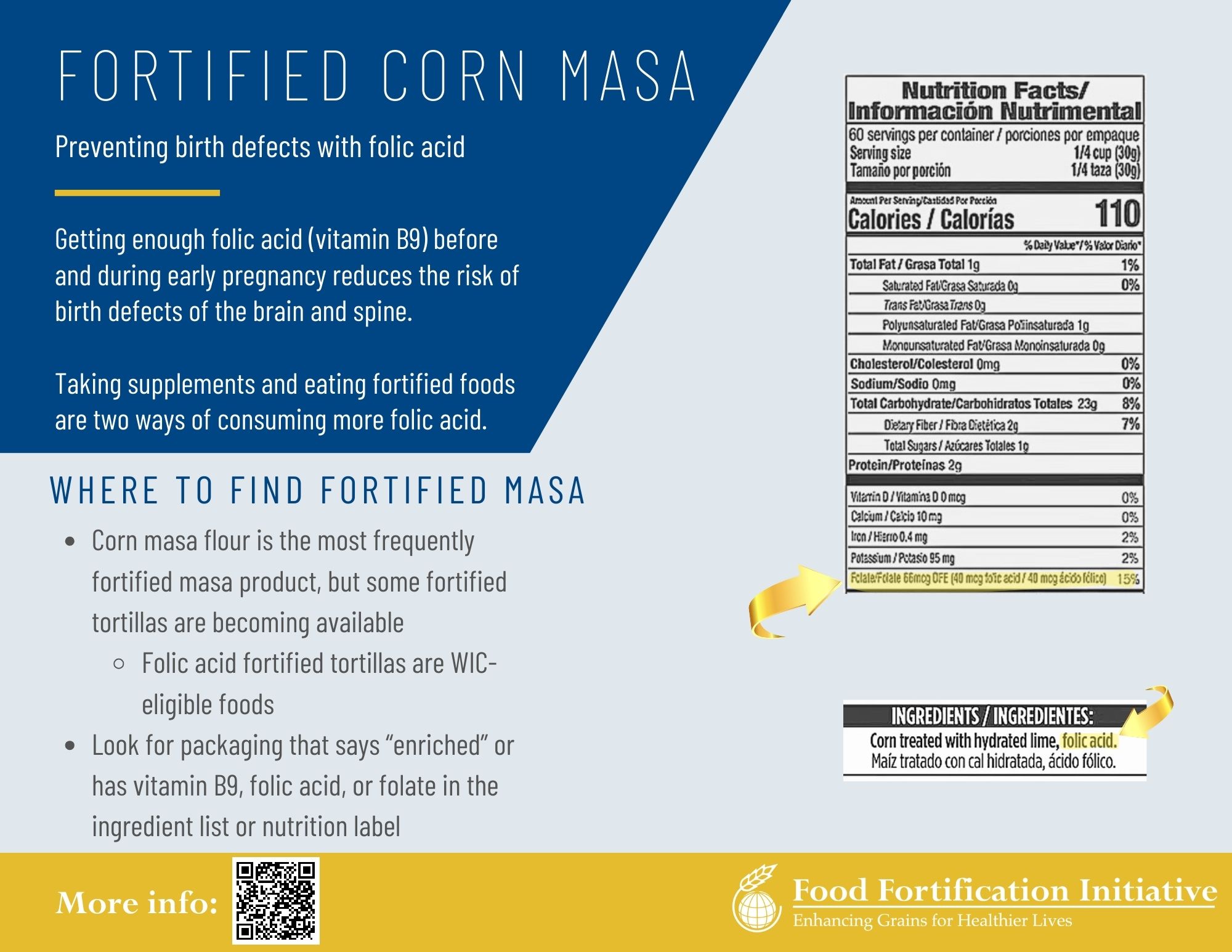 A 2024 FFI supply chain analysis of corn masa in the United States revealed that only 5.8% of such products are fortified with folic acid. This report underscores the need for ongoing assessment and strategies to enhance the availability of culturally appropriate fortified foods.