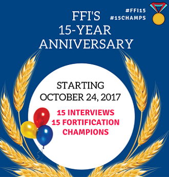 The public policy planning forum that launched what became FFI was on 24 October 2002 in Mauritius. To celebrate our 15th birthday in 2017, we honored 15 fortification champions from different sectors and different parts of the world. An influential person who supports fortification is a key to success.