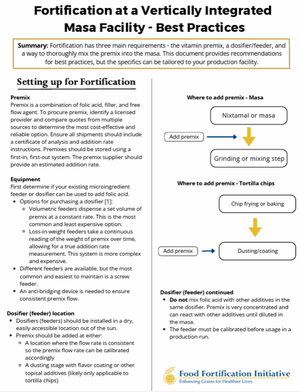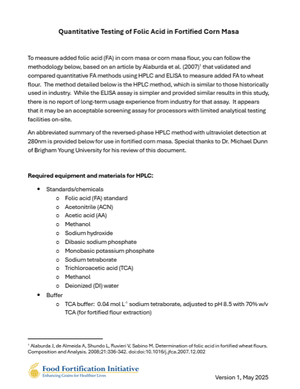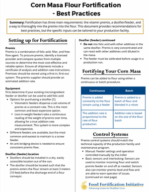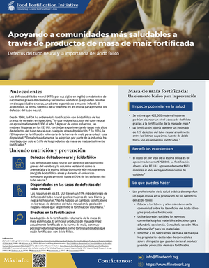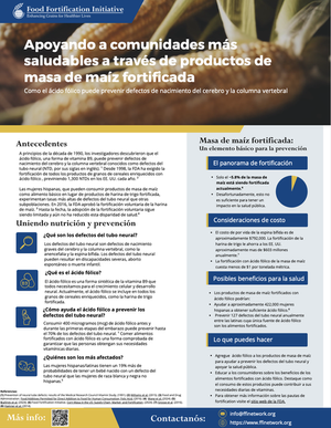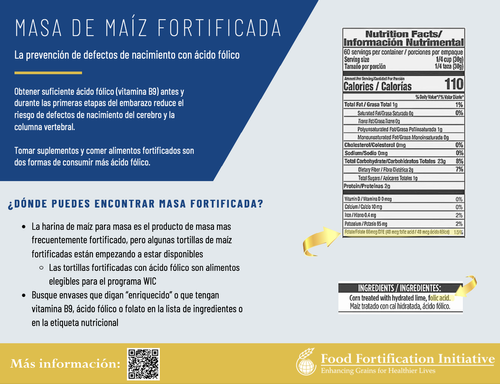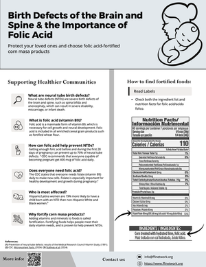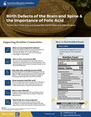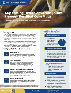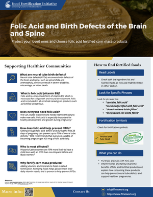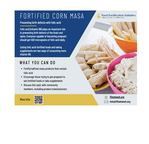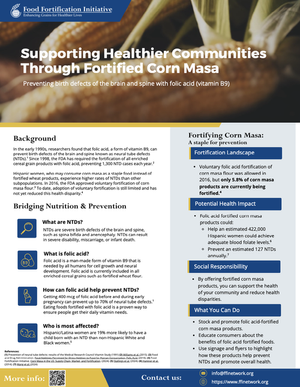 A 2024 FFI supply chain analysis of corn masa in the United States revealed that only 5.8% of such products are fortified with folic acid. This report underscores the need for ongoing assessment and strategies to enhance the availability of culturally appropriate fortified foods.