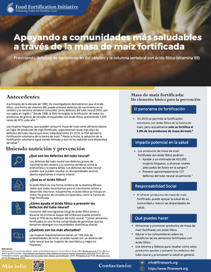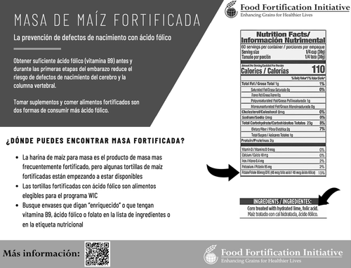 Corn masa and corn masa products were not included in the United States Food and Drug Administration (FDA) folic acid fortification mandate. In an effort to rectify this oversight, the FDA allowed for the voluntary fortification of corn masa flour with folic acid in 2016. Despite this allowance, only an estimated 5.8% of corn masa products in the United States are fortified with folic acid.