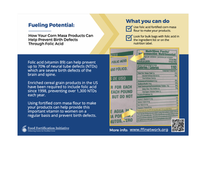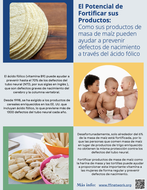 A recently published FFI market assessment in California and Texas finds that only 13% of corn masa products were fortified with folic acid. If these corn masa products were fortified, an additional 235 birth defects in the US could be prevented each year.