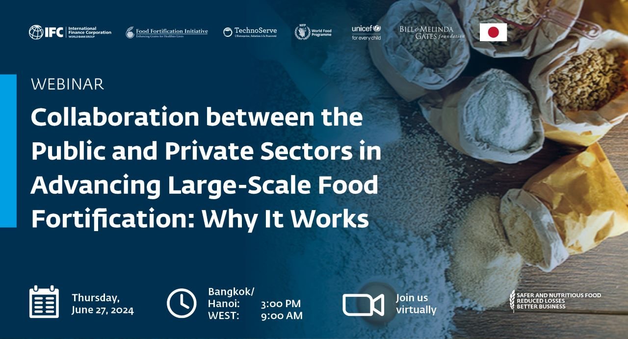 On June 27, 2024, the International Finance Corporation hosted a webinar titled “Collaboration between the Public and Private Sectors in Advancing Large-Scale Food Fortification: Why It Works.” This event featured presentations from FFI, TechnoServe, the World Food Programme, World Bank Group, and UNICEF.